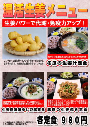 急な「戻りびぃーさ」と強い北風で体感温度は1ケタかもしれませんね☃ 寒い寒い時には、当店の「温活生姜メニュー」で代謝&免疫アップを目指してみませんか~。